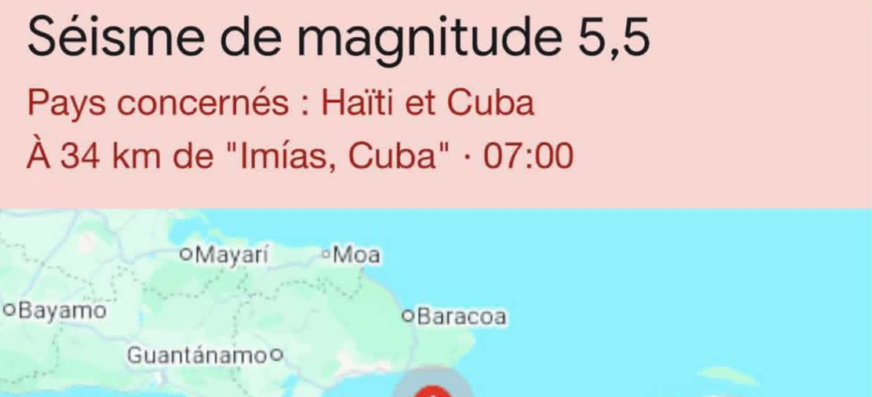 Séisme de magnitude 5,5 entre Cuba et Haïti : La secousse secoue les Cayes